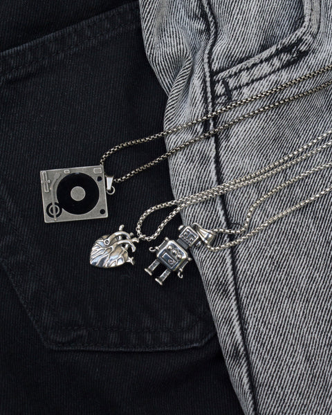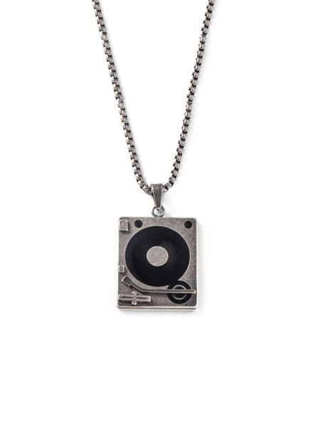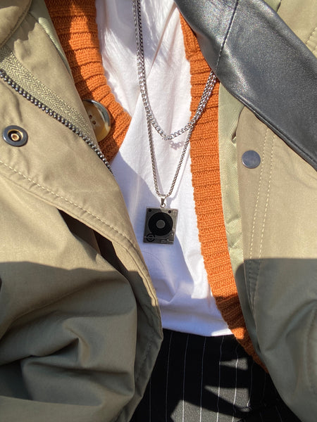 Minimalist necklace featuring delicately designed vinyl player pendants and box chain. Elevate your style with our necklace, perfect for daily wear and layering. Crafted from high-quality stainless steel and available in silver color.